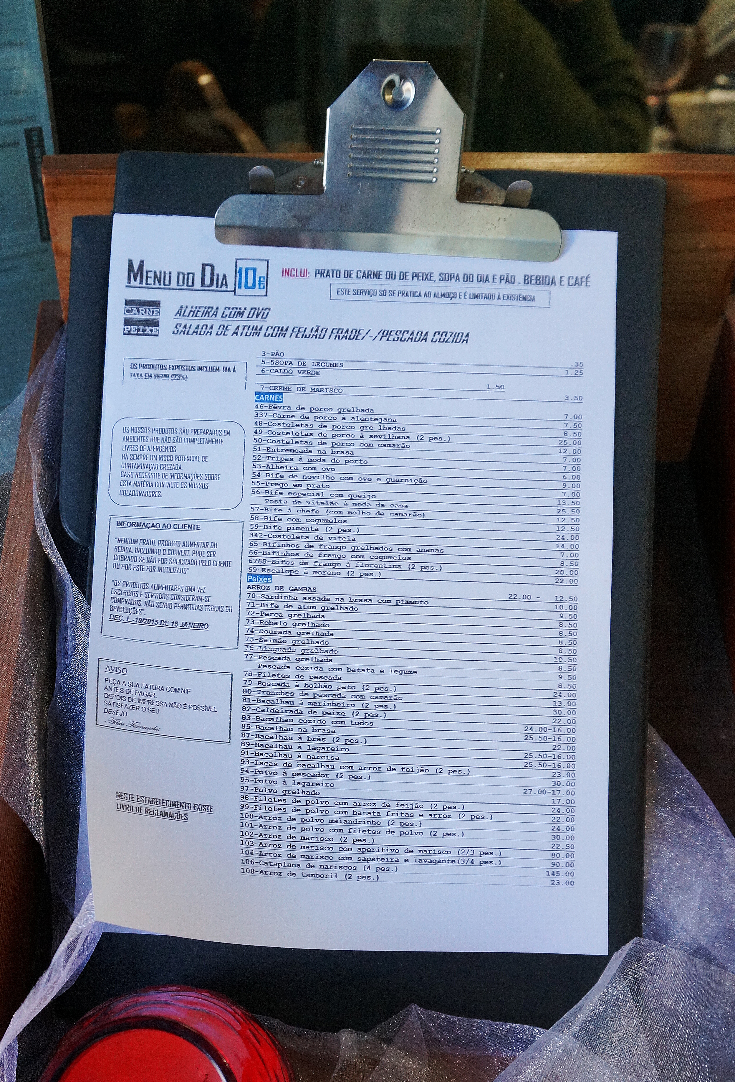 Porto waterfont menu