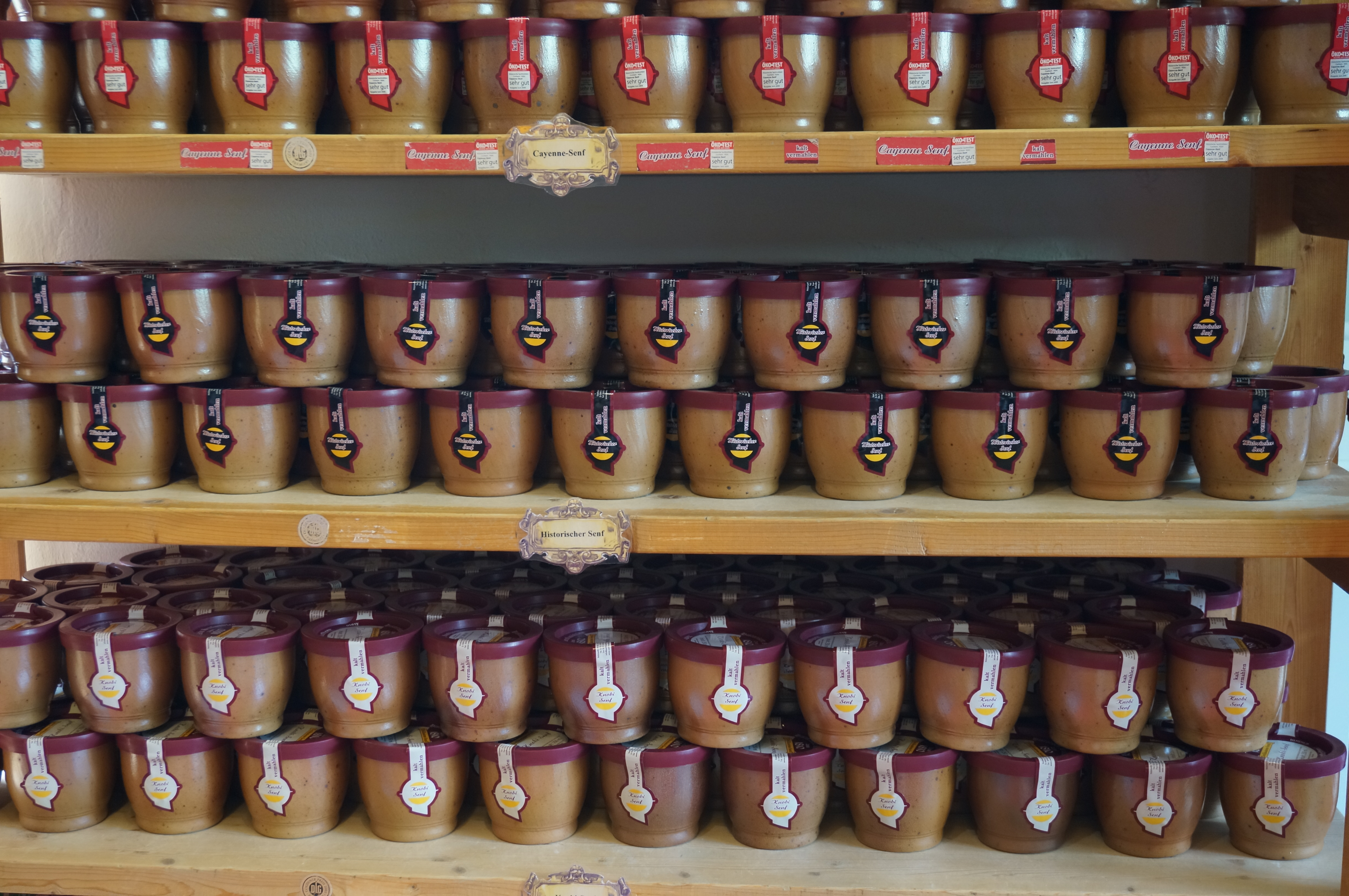 Stoneware mustard jars ready to go