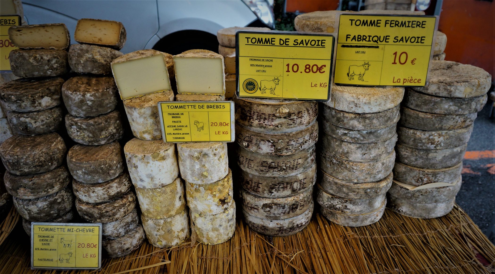 Tomme de Savoie, at the market in Thonon les Bains, France