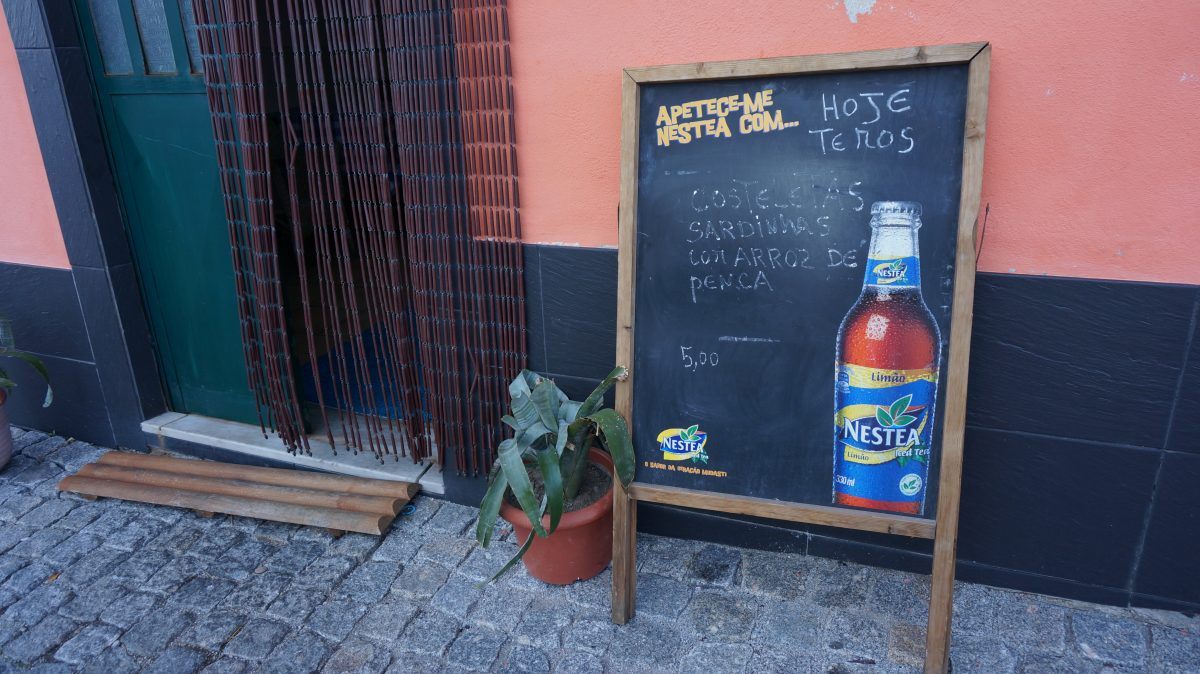 A 5 Euro lunch in Porto - sardines, rice with vegetables, pitcher of Vino Branco