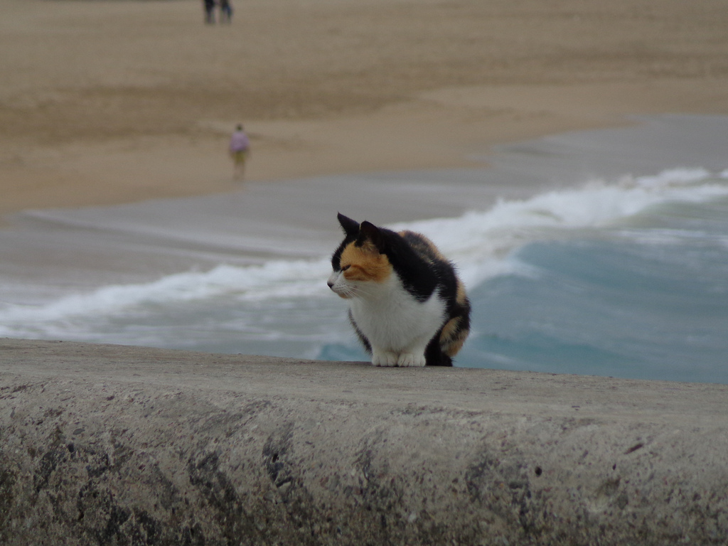 Cats and surfers coexist at La Zurriola surf beach